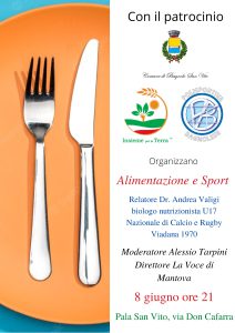 “La corretta nutrizione è fondamentale per qualsiasi persona ed in particolare per un atleta”. Parola di Andrea Valigi, nutrizionista del Rugby Viadana 1970 e dell’U17 della Nazionale di calcio intervenuto nell’incontro “Alimentazione e Sport” organizzato dalla Fondazione Insieme per la Terra al Pala San Vito a Bagnolo.