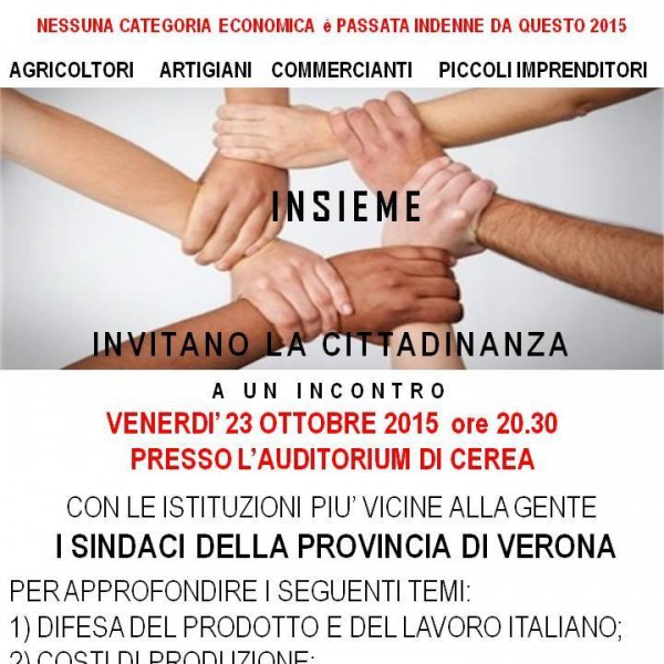 Parlare di crisi economica, dopo la serata di ieri sera a Cerea (Verona), vuol dire parlare della nascita di un’azione comune delle varie categorie produttive per far ripartire il territorio. Finalmente agricoltori, artigiani, commercianti, piccoli imprenditori si sono riuniti non solo con l’intento di parlare dei loro problemi ma chiedendo concretamente ai Sindaci presenti di sostenere in ogni modo i prodotti locali partendo ovviamente da quelli agricoli. Obbiettivo dell’incontro è stato proprio quello di riunire tutte le forze della società civile e produttiva per fermare la moria di Aziende garantendo un futuro occupazionale e di rilancio economico per il territorio. Linea ampiamente condivisa è stata quella di iniziare e sviluppare azioni concrete partendo dal locale per poi proseguire, in un secondo momento, con il nazionale. L’incontro fortemente voluto ed organizzato dall’Associazione Azione Rurale ha messo in evidenza la tolleranza e l’avanzata del prodotto agricolo estero, europeo e non, da parte…
