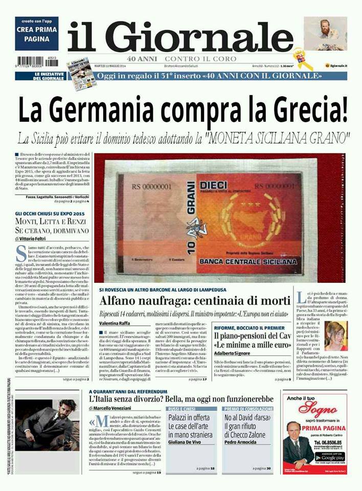 – accreditare un reddito sociale pari a € diecimila annui alle famiglie disagiate che, utilizzando la moneta pubblica Grano, attraverso la loro spesa in prodotti e servizi locali, permetterà di attivare la filiera agroalimentare creando duecentomila nuovi posti di lavoro e la totale raccolta differenziata dei rifiuti solidi urbani;