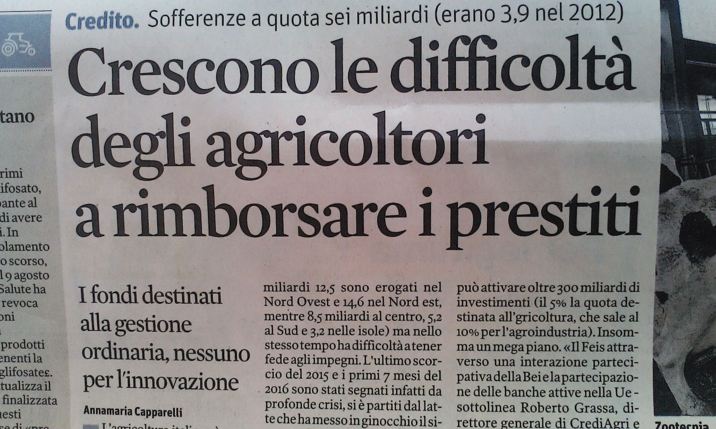 Nella giornata del 20 agosto, il principale quotidiano economico italiano, ammette che “Il governo è corso ai ripari con nuovi finanziamenti e anche un intervento forte con le banche per una moratoria dei debiti sia per i produttori di latte che per i suinicoltori. Ma si tratta di misure che ancora devono diventare operative e in particolare per quanto riguarda la moratoria per il settore suinicolo è attesa l’interpretazione dell’ABI. I finanziamenti sono così stati spesso dirottati alla gestione ordinaria“.
