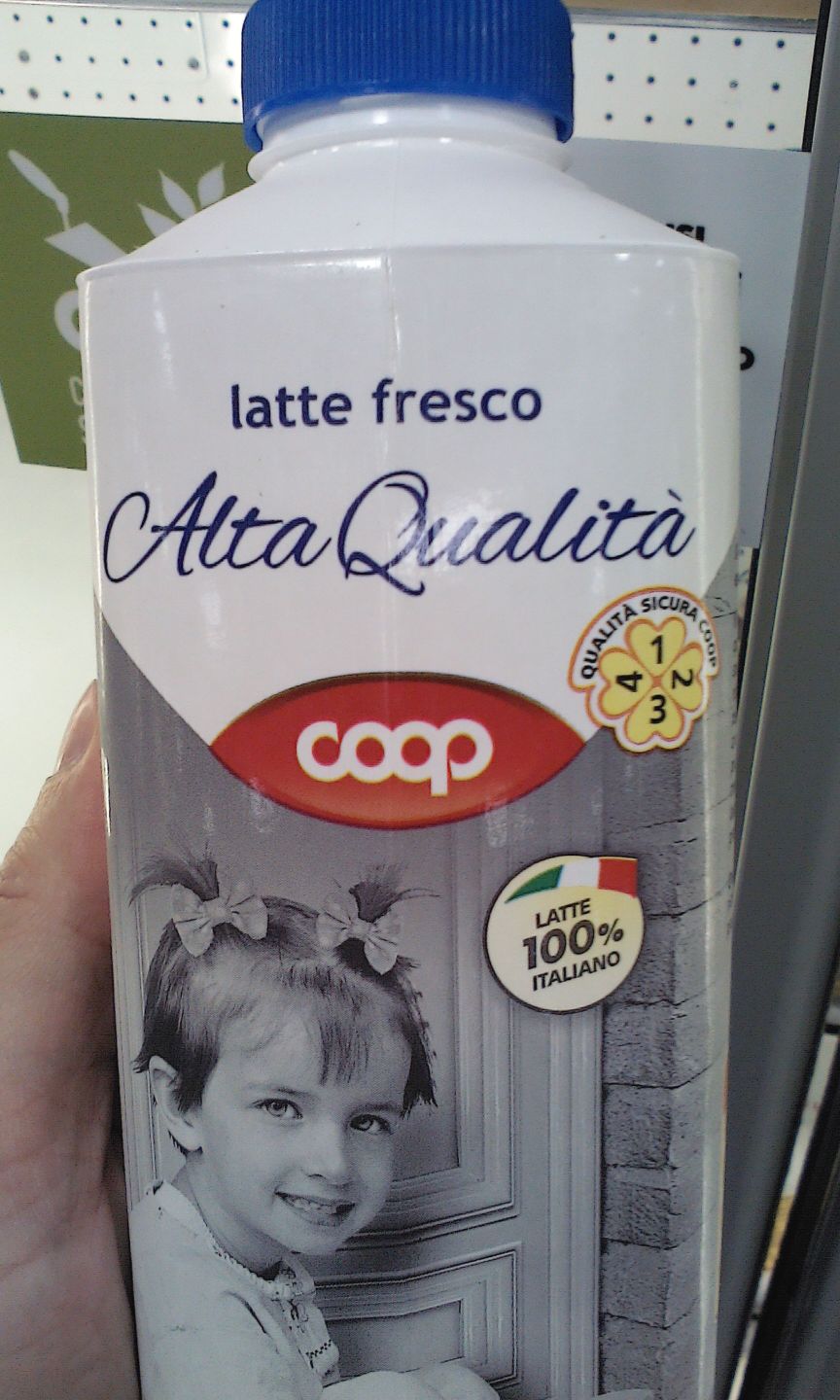 Ben lontani dal lasciarsi rassegnare alla morte delle nostre imprese agricole ed agroalimentari, ricoperti dal silenzio mediatico complice della cappa che attanaglia il Paese, ci siamo “armati” di cellulare con videocamera ed abbiamo iniziato la nostra inchiesta. Obbiettivo sapere se il latte ed i latticini Coop tanto reclamizzati sono fatti con materia prima italiana o straniera. Pazienza certosina, scaffale dopo scaffale, frigorifero dopo frigorifero, scandagliamo ogni prodotto alla ricerca della verità. Ebbene latte fresco, intero, parzialmente scremato e alta qualità riportano il logo “Da latte 100% italiano”.