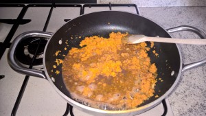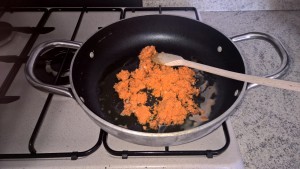 - In una casseruola mettete l’olio extravergine d’oliva e fate soffriggere i sapori.
