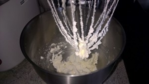 - Sbattete il burro tagliato a dadini con lo zucchero e la vaniglia fino a raggiungere una consistenza spumosa.