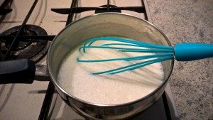 - Mettete in un pentolino il latte intero freddo e setacciategli all’interno la farina.