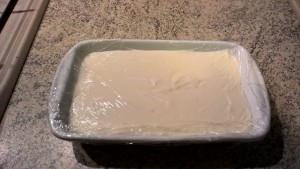 - Versate la crema ottenuta in un contenitore largo e basso e copritelo con la pellicola avendo cura di fare aderire la pellicola alla crema. Lasciate raffreddare.