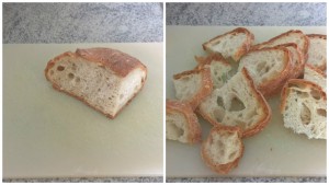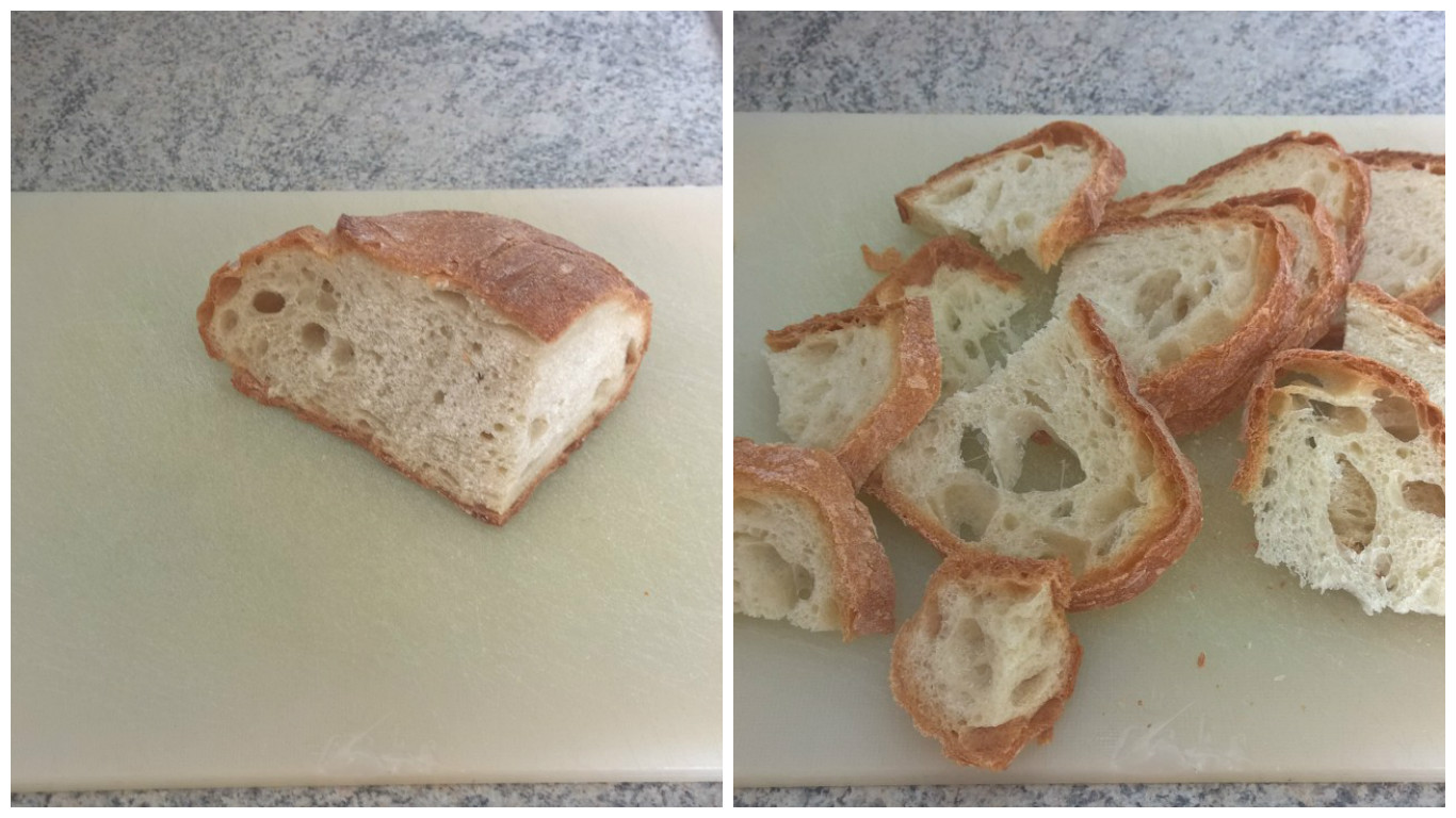 - Prendete del pane pugliese e affettatelo in modo da ottenere dei crostoni.