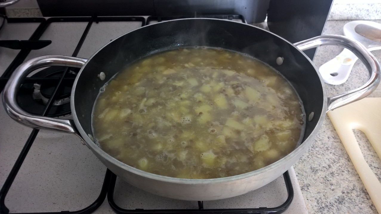- Fate rosolare bene le patate, salate e pepate e poi aggiungete un po’ di brodo vegetale per ammorbidirle.