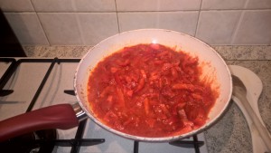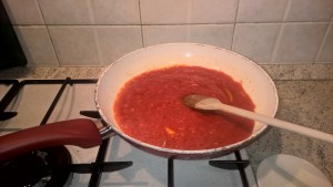 - Quando la cipolla sarà dorata aggiungete la passata di pomodoro.