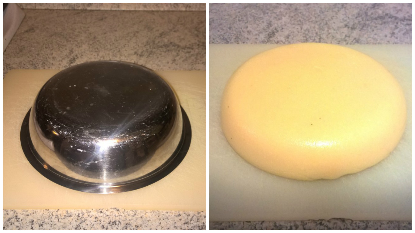 - Appena pronta la polenta svuotate la ciotola dall’acqua (non asciugatela) e vuotateci la polenta pronta.
