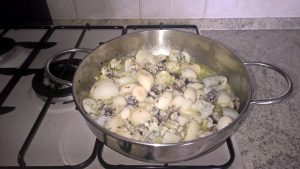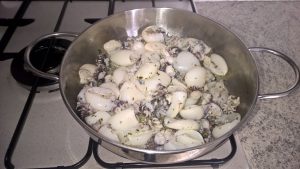 - Quando l’olio inizia a sfrigolare, aggiungere le seppioline.