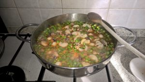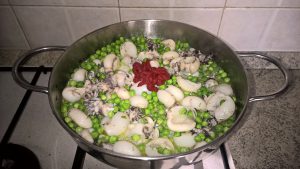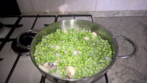- Aggiungere i piselli e continuare la cottura per altri 5 minuti.