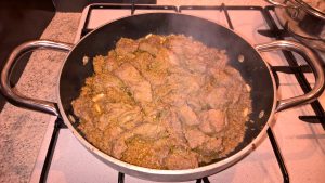 Mi raccomando, passaggio importantissimo, la rosolatura del cinghiale nella casseruola vuota per l’eliminazione dell’acqua.