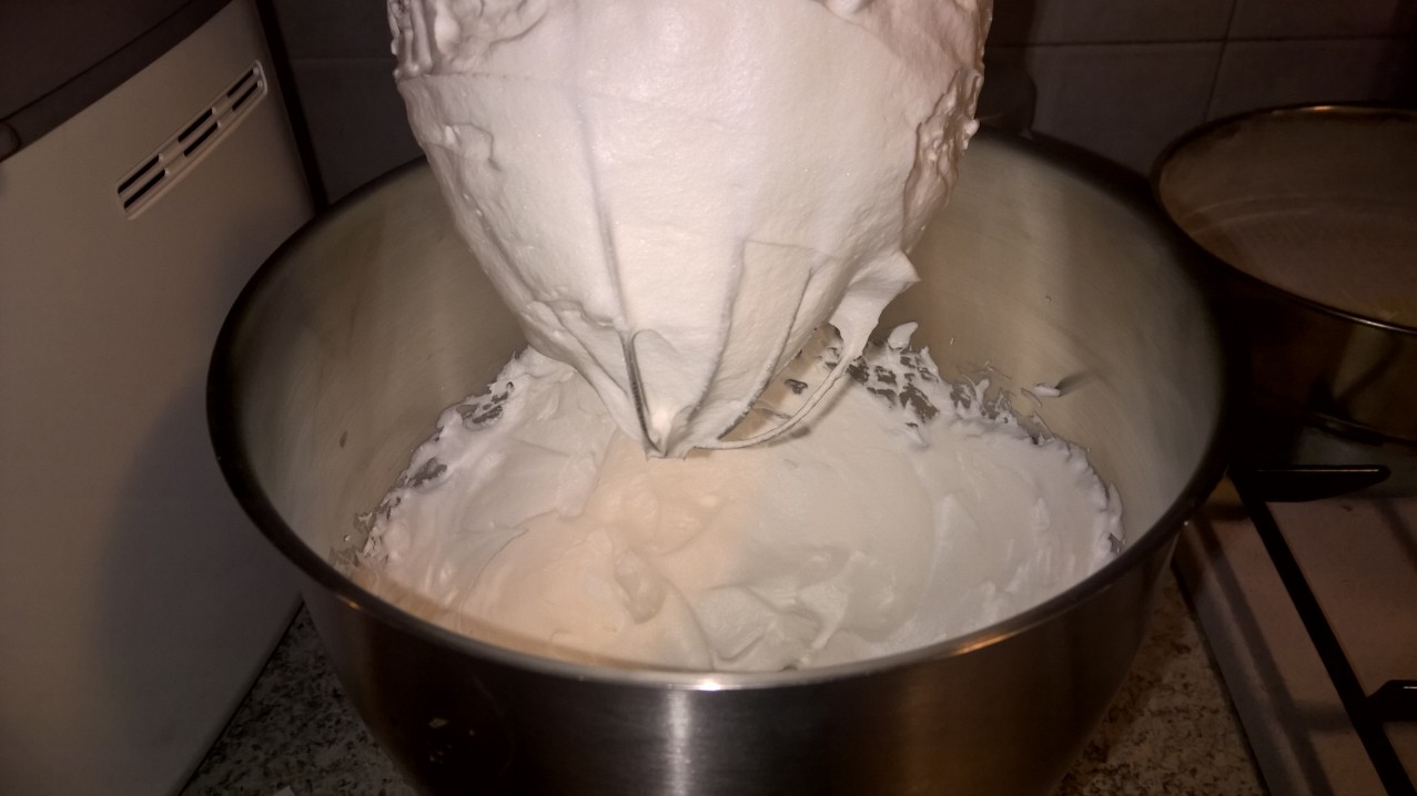 4. Prendere gli albumi, aggiungetegli i restanti 40 gr. di zucchero e montateli a neve fermissima.2
