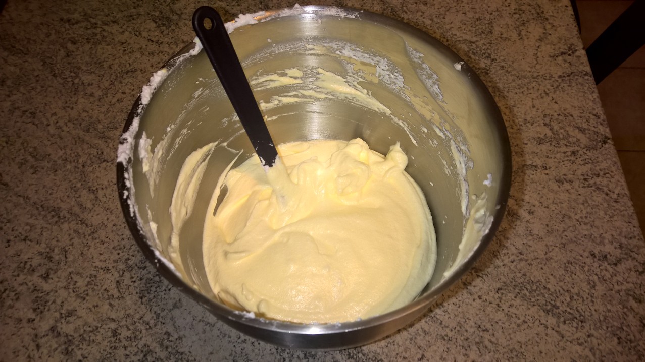 8. Aggiungete al composto il burro liquefatto continuando a mescolare sempre dall’alto verso il basso.