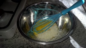 - In una ciotola sbattete in modo grossolano due uova con 3 prese di sale e il Grana Padano grattugiato.