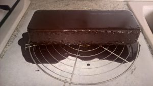 - Quando il plumcake sarà completamente raffreddato irroratelo di ganache al cioccolato fondente, avendo cura di coprire tutti gli spigoli ed il fondo. Lasciate consolidare per bene, il cioccolato in più scivolerà sulla carta forno sottostante.