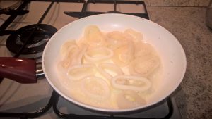 - In una padella mettete dell’olio d’oliva e quando inizia a sfrigolare, aggiungete i totani. Fate friggere per circa 10 minuti, o comunque fin quando non avrete la cottura per voi ottimale.