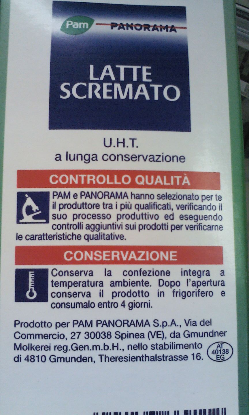 Arrivati al latte UHT a marchio Pam Panorama l’emozione ci ha travolti. In che senso? Sulle confezioni abbiamo letto “Gmunden“, località dell’Alta Austria. Mentre ai produttori di latte viene negato il ritiro, mentre la Lactalis spinge al ribasso i prezzi per aumentare il proprio profitto, la Pam Panorama si approvvigiona in Austria. Indifferenza assoluta sulle problematiche attuali del territorio. La finzione dell’uso appropriato del tricolore si scontra con la realtà dell’ipocrisia.