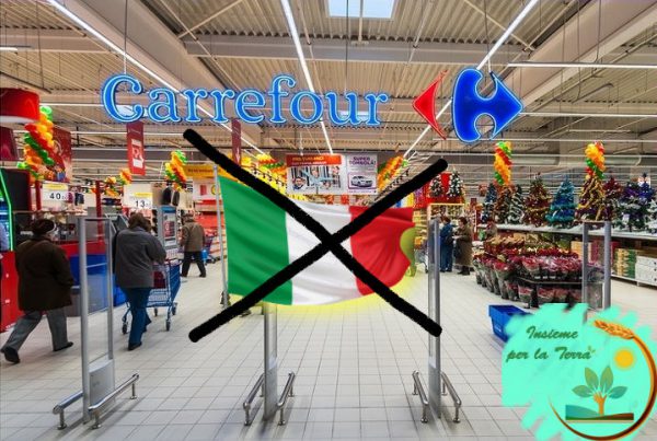 Il nostro viaggio inchiesta lungo lo stivale è oggi approdato alla Carrefour. Obbiettivo verificare quanti prodotti a marchio della GDO sono italiani o spacciati per italiani grazie al marketing. Entriamo nel negozio Carrefour situato nel centro di Mantova Capitale della Cultura Italiana anno 2016. In un primo momento siamo stati confortati nel trovare nei banchi frigo insalata mista 100% italiana e crescenza fatta con latte italiano. Fuori frigo abbiamo notato anche confezioni di uova a marchio Carrefour. Su tutte le confezioni, grazie a loghi appositamente studiati, viene posta in risalto l’italianità dei prodotti. Dopo la prima impressione positiva veniamo subito colpiti dalla disinvoltura ingannevole con cui viene confezionata la pasta a marchio Carrefour, sicuramente non italiana. Grazie alla dicitura “Tutto il sapore ed i colori della cucina tradizionale” il marketing riesce praticamente a trasformare il “piombo in oro”. Volete magari dissetarvi con una buona spremuta di arance rosse straniere o…