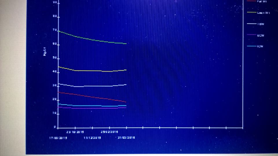 Per interpretare correttamente l’effetto prodotto da un programma nutrizionale è utile il monitoraggio con strumenti che indaghino la composizione corporea. Le metodiche di indagine comunemente utilizzate sono in grado di stimare la composizione corporea, anche la DEXA ha mostrato dei limiti di indagine su soggetti molto muscolosi. Non mi dilungo oltre, volevo solo mostrarvi cosa vorremmo vedere quando si parla di dimagrimento. Questa è una signora che sta lavorando molto bene (Dati Impedenza bioelettrica): – Linea verde peso – Linea gialla muscolo – Linea rossa Grasso Dr. Matteo Pincella