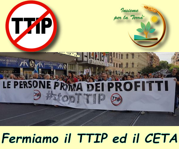 Prendiamo a braccetto la campagna di sensibilizzazione CONTRO il TTIP e CETA lanciata da Stop TTIP Italia, che sostanzialmente chiede di riempire le caselle di posta ed i Social ufficiali del Governo con questa iniziativa. Vi postiamo qui il loro appello giunto via News Letter: Al Consiglio Europeo di Bratislava, il 16 settembre, si parlerà dei destini del CETA e del TTIP in vista dell’incontro informale dei Ministri degli esteri il 23 settembre, sempre in Slovacchia. Per questo le reti della società civile #StopTTIP e #StopCETA hanno rilanciato la mobilitazione non per chiedere un semplice rinvio, ma lo stop ai negoziati TTIP e al processo di approvazione del CETA Continua con gli aggiornamenti a questo link: http://www.stop-ttip-italia.net ——————————————————————- Reagisci il 16 settembre insieme alla Campagna StopTTIPItalia: Caro Matteo, stiamo scherzando? Scriviamo a Matteo Renzi matteo@governo.it, presidente@pec.governo.it Cinguettiamo insieme su Twitter contro l’iniziativa Italiana dalle ore 12 del 16 settembre con @StopTTIP_Italia Tutte le istruzioni…