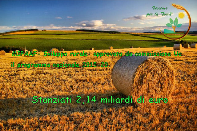 MIPAAF su sviluppo rurale: approvato da commissione UE il programma nazionale 2015-20. Stanziati 2,14 miliardi di euro