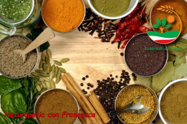 Sappiamo che spezie ed erbe aromatiche hanno un grande potere antiossidante ovvero in grado di contrastare i radicali liberi che sono i principali nemici di salute e bellezza, anche bellezza della pelle. Una buona abitudine è di utilizzarle spesso in cucina per impreziosire tutti i nostri piatti (si impreziosire è la parola corretta perché sono una fonte importante di principi nutritivi e di Sali minerali). Basilico, menta, aglio, peperoncino, cannella, cumino, curcuma, ma anche prezzemolo, timo, maggiorana, zenzero…oltre alla salute donano sapore ai nostri piatti, ci permettono di diminuire la quantità di sale in tavola (che è sempre un bene limitare) e di colorare i piatti. Possiamo anche preparare degli infusi ad esempio alla menta, allo zenzero ma anche alla salvia o all’ortica e consumarli freddi nei caldi pomeriggi estivi al posto delle bevande industriali zuccherate. La menta rinfresca, la salvia migliora la sudorazione, lo zenzero favorisce la digestione, l’ortica…