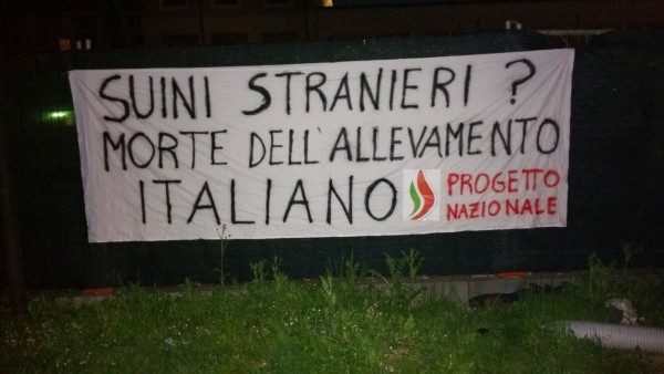 Mentre la politica italiana vive sotto una cappa di cloroformio lontana dalla realtà allucinante in cui vivono i nostri allevatori di suini, l’industria continua a sfornare prodotti stranieri presentandoli come italiani agli occhi del comune consumatore. Una buona pubblicità, magari con attori giovani, è sufficiente per creare e rievocare il mito della cucina nostrana, dinamica e giovanile. Invece la realtà è ben diversa. La denuncia politica viene da Progetto Nazionale, che dopo l’iniziativa sul latte straniero di pochi giorni fa, non risparmia complimenti all’industria italiana. SUINI STRANIERI? MORTE DELL’ALLEVAMENTO ITALIANO!!! L’Associazione Progetto Nazionale rivendica ufficialmente la paternità degli striscioni esposti davanti alle aziende Parmacotto s.p.a. di Parma, Levoni s.p.a. di Castellucchio (MN), Montorsi di Vignola (MO), Cremonini di Castelvetro (MO), AIA di Formigine (MO) e le camere di commercio di Mantova e Modena. Ma quale “made in Italy”? Il comparto suinicolo italiano è invaso da carni di provenienza estera! In Italia…
