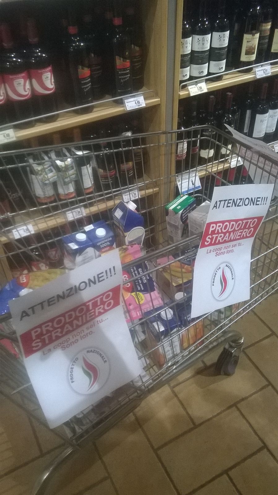 L’Associazione Progetto Nazionale rivendica ufficialmente l’azione politica di protesta all’interno dei supermercati “Coop” nei capoluoghi delle province di Mantova, Reggio Emilia e Modena.